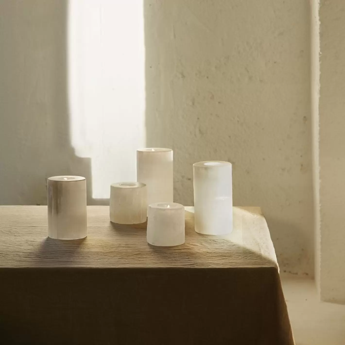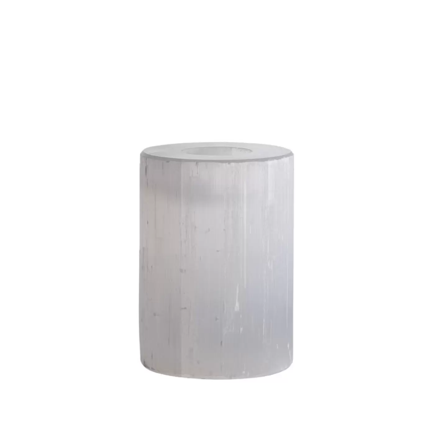 Fyrfadsstage, selenit, D8xH12 cm, hvid