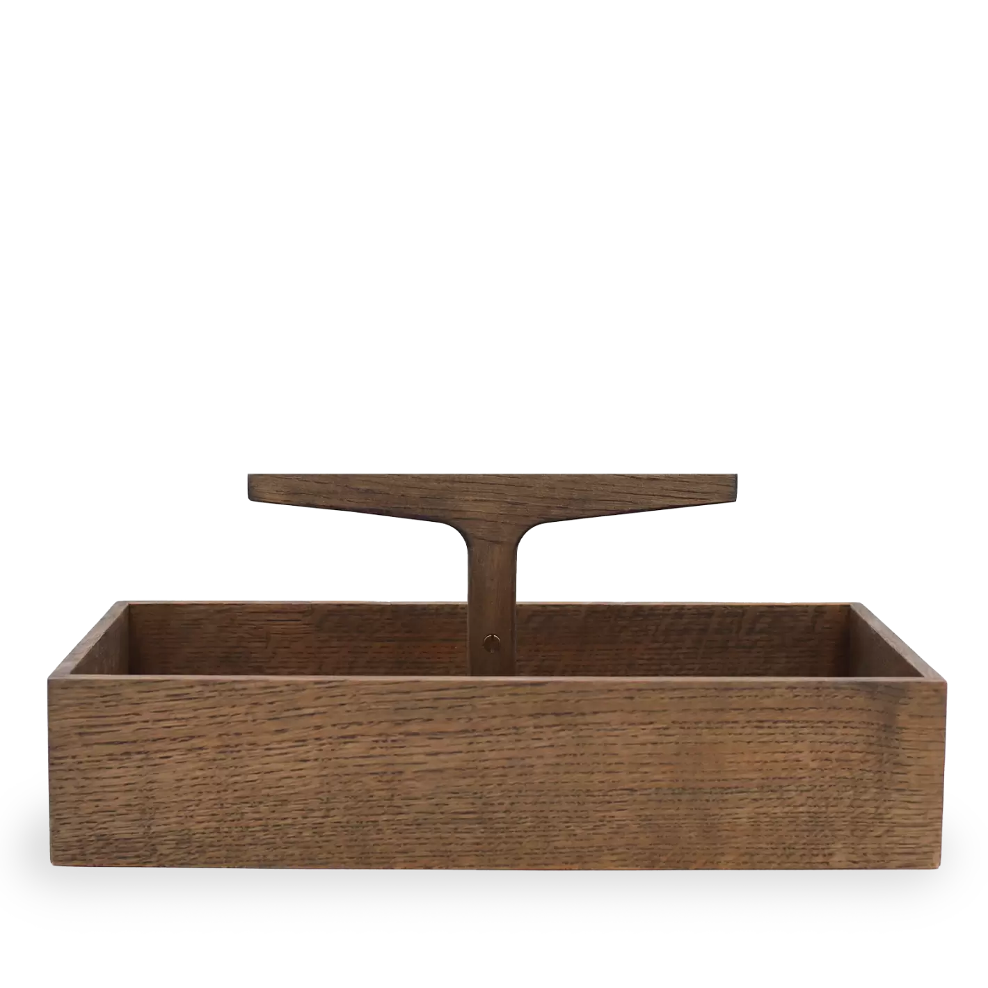 Denne skønne opbevaringskasse som minder om en gammeldags værktøjskasse, er fremstillet i Europa af massivt FSC-certificeret europæisk mørkbejdset egetræ. Bunden er af egetræsfiner - og hele herligheden er designet af franske Aurélien Barbry.