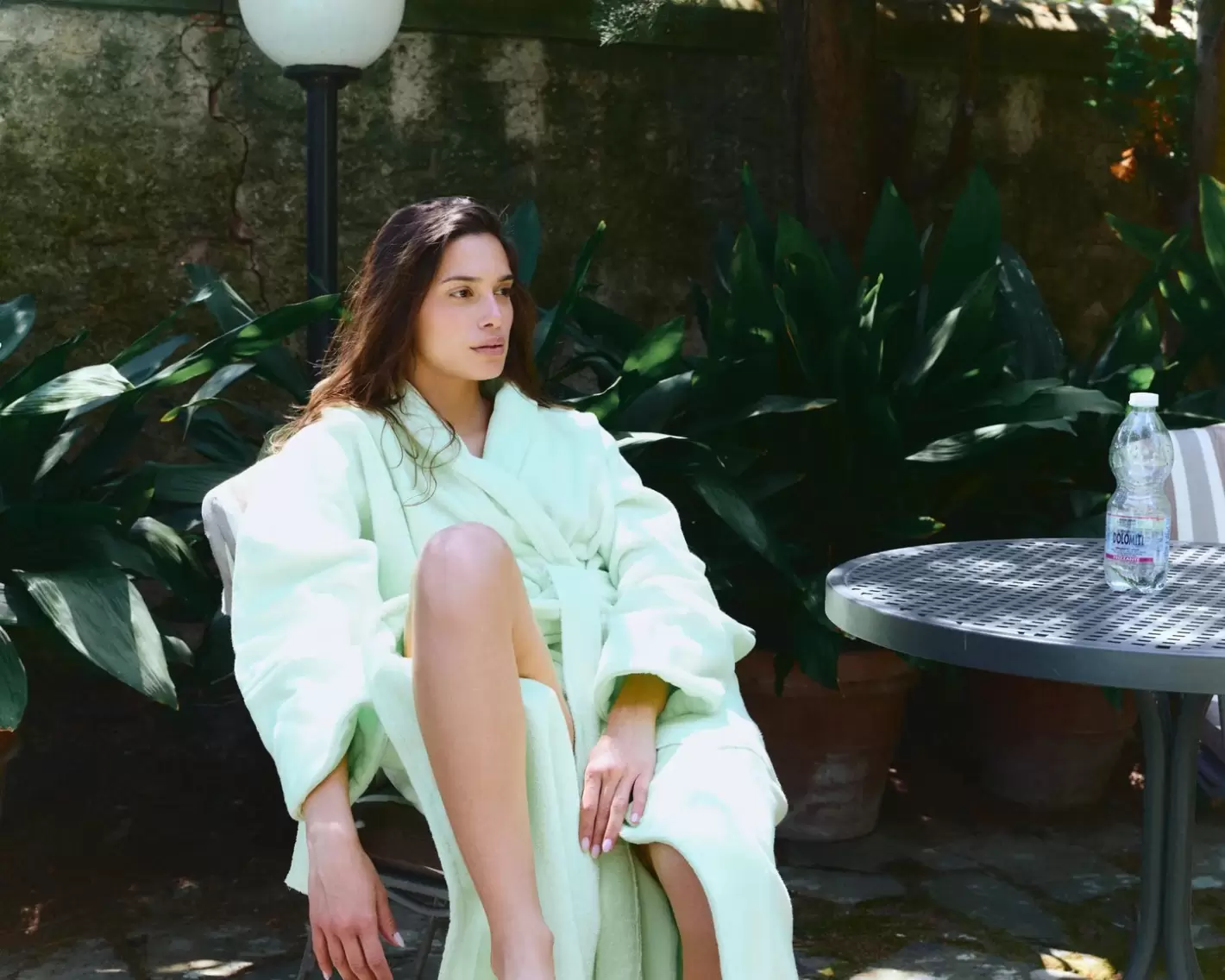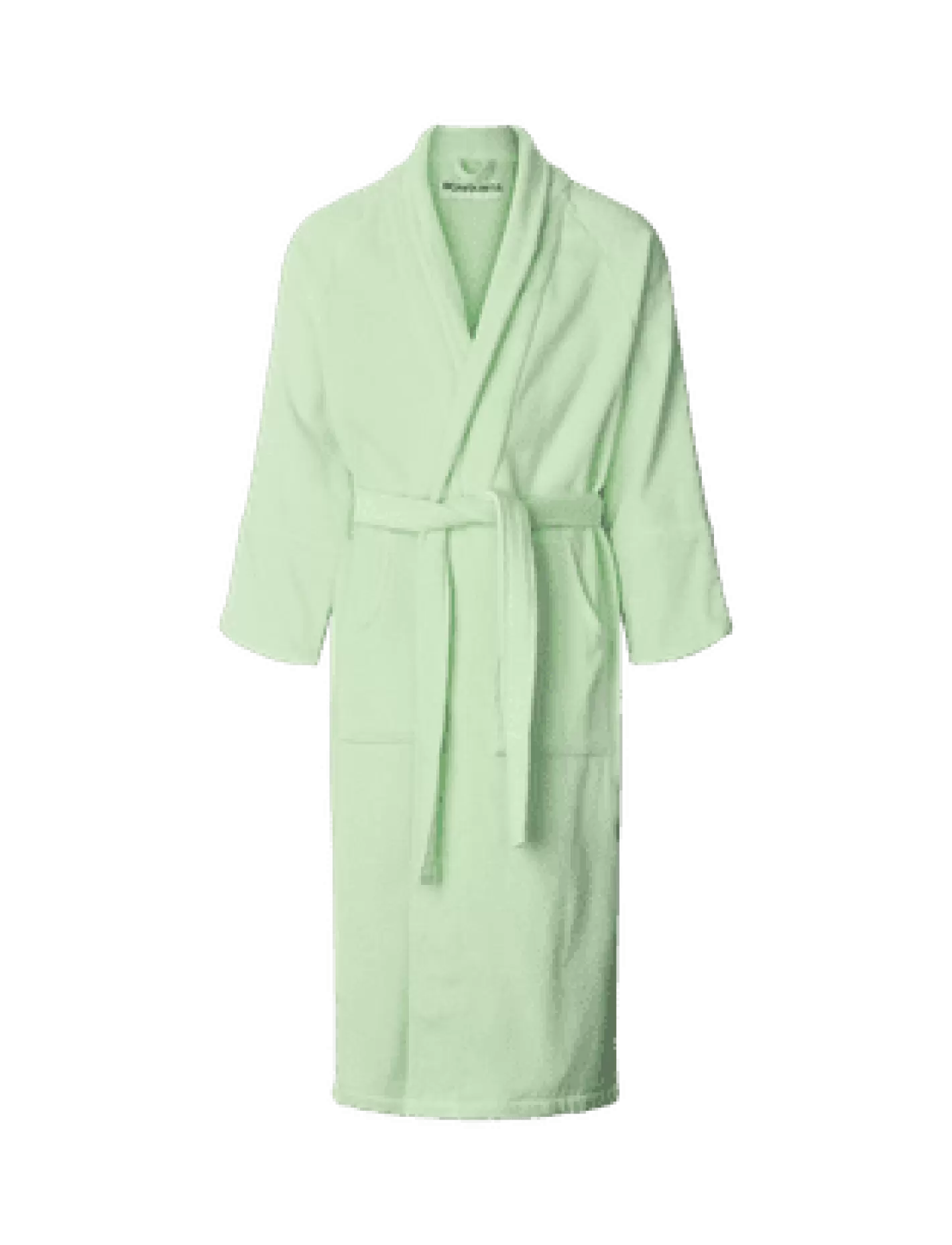 Badekåben er fremstillet af kæmmet 100% Øko-Tex bomuldsfrotté, den har store praktiske lommer, stor sjalskrave og bælte - og den føles super behagelig og virkelig blød at have på. Det gennemtænkte design sikrer, at du kan bevæge armene frit, og længden er tilpasset, så kåben dækker dine knæ, når du sidder ned.