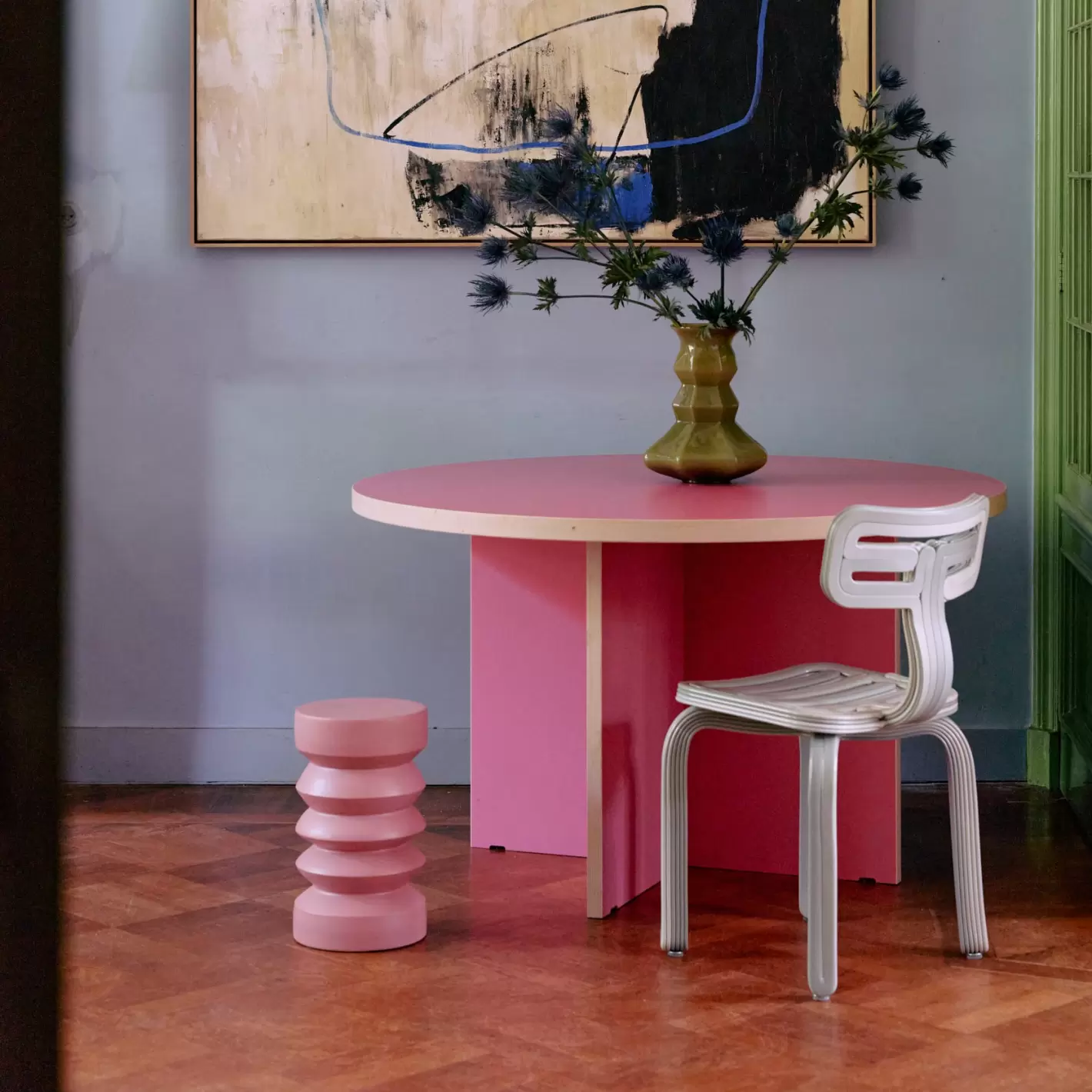 Dette sidebord i stentøj har en legende form, en munter farve og den rette robusthed til at holde din kop kaffe sikker.