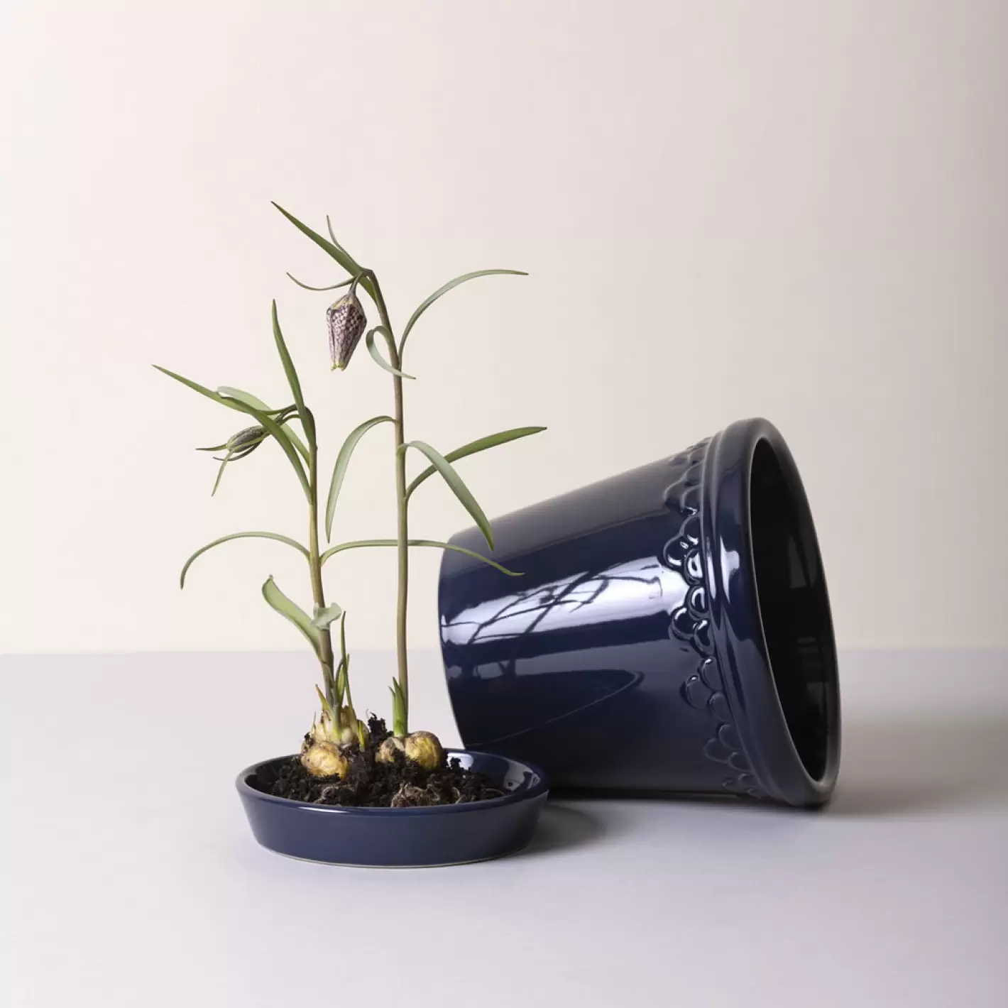 Denne blå glaserede Københavner-potte består af både en potte og en underdel.Den måler 12 cm. i diameter og har en højde på ca. 11 cm.Københavnerpotten har kongelig arv og er en af de første potter designet af Bergs Potter. Denne noble potte er inspireret af keramik lavet til Fredensborg Slot i 1860.For år tilbage stødte Steffen Berg på smukke gamle lerpotter på et tidligere planteskole og skabte Københavnerpotten, sin helt egen fortolkning af keramikken med kongelige oprindelse. I dag er Københavnerpotten et af vores mest populære designs, og vores keramikere laver den stadig i hånden i små familieejede værksteder, hvilket holder de gamle traditioner i live. Arven fra Københavnerpotten tilføjer et element af kongelig elegance, selv når den parres med den mest beskedne plante.Københavnerpotte-serien omfatter adskillige størrelser og findes nu også i en håndglaseret udgave, sblandt andet denne blå bl.a. inspireret af farverne i det klassiske København.