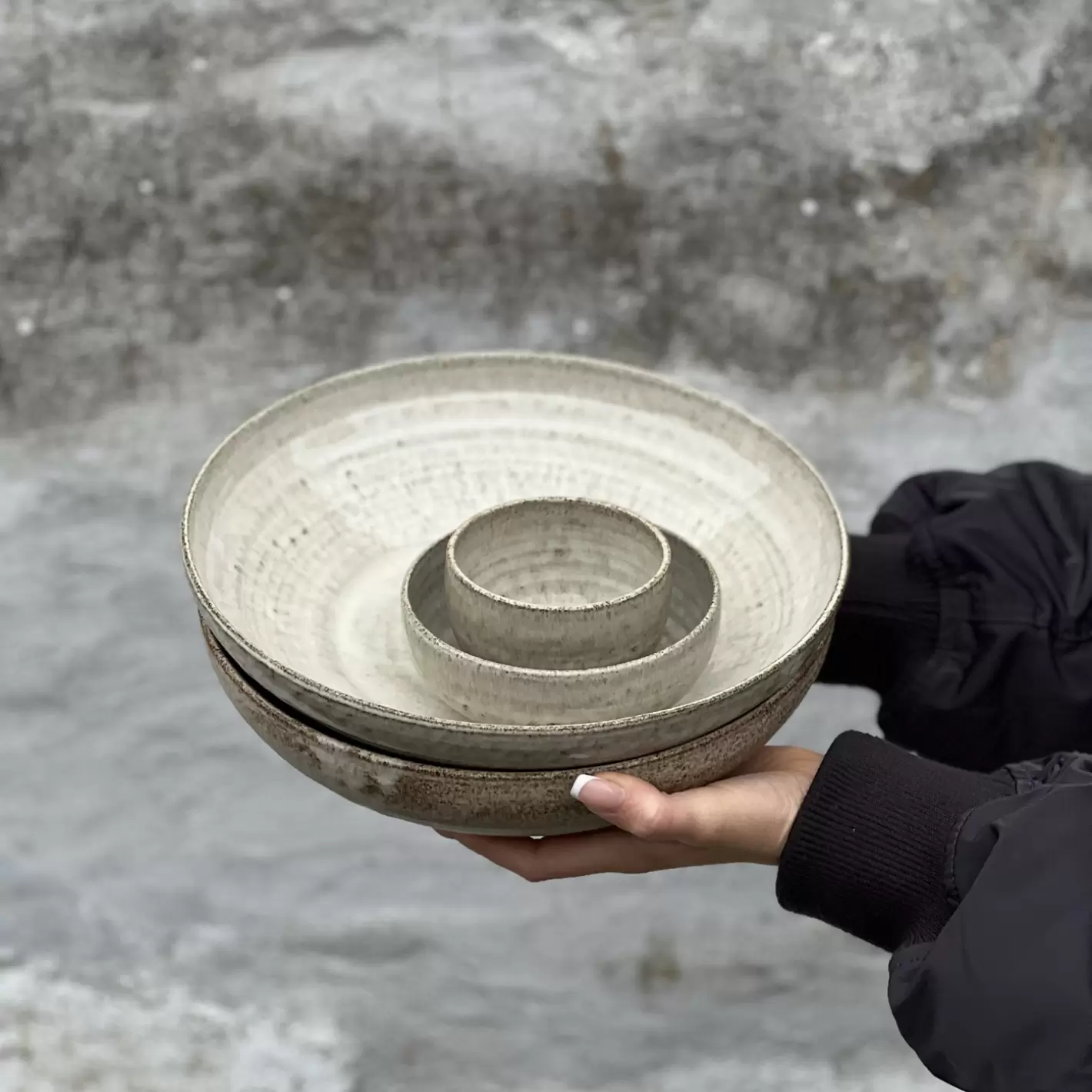 Skålen passer perfekt som salatskål, til servering af pastaretter eller som frugtskål, og hver skål har sit eget udtryk - nogle er en smule mørkere, andre lidt rundere - det er præcis det der sker, når menneskehænder er involveret i skabelsesprocessen.