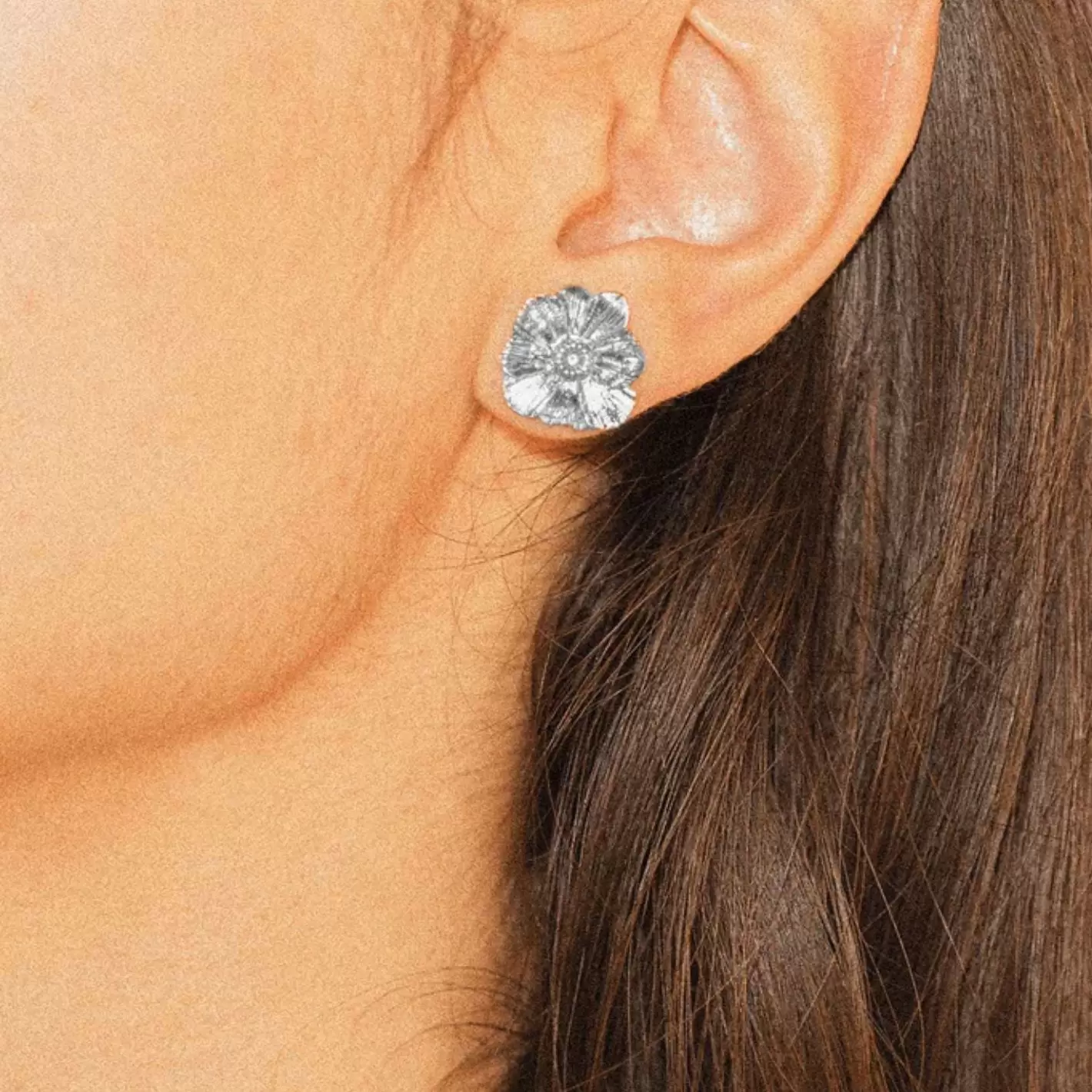 Øreringene er fremstillet af 925 genanvendt sterlingsølv, og på trods af den beskedne størrelse byder de på et væld af smukke detaljer på de fine kronblade.