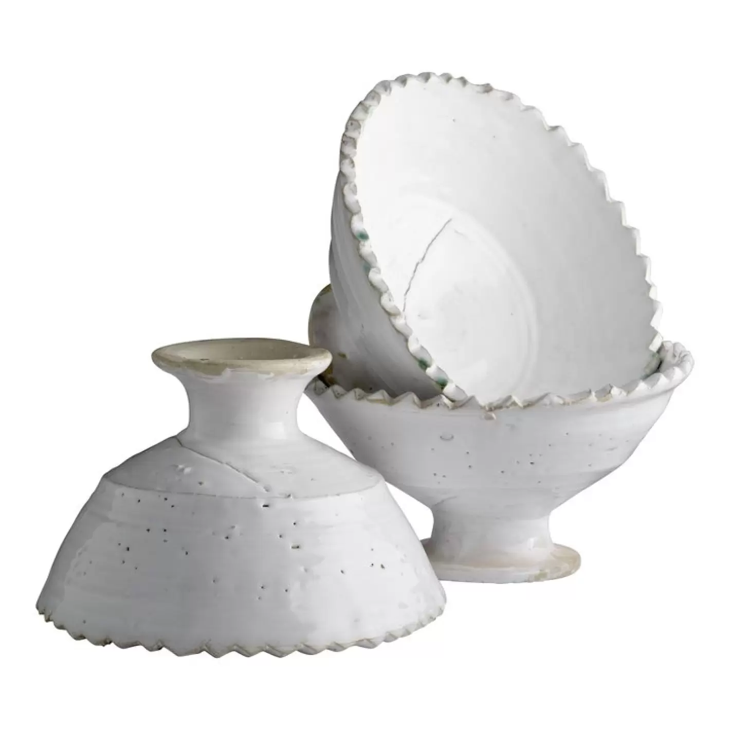 De håndlavede opsatser er meget rustikke, så skævheder og hak er ikke anledning til reklamation, det er ganske enkelt en del af udtrykket.