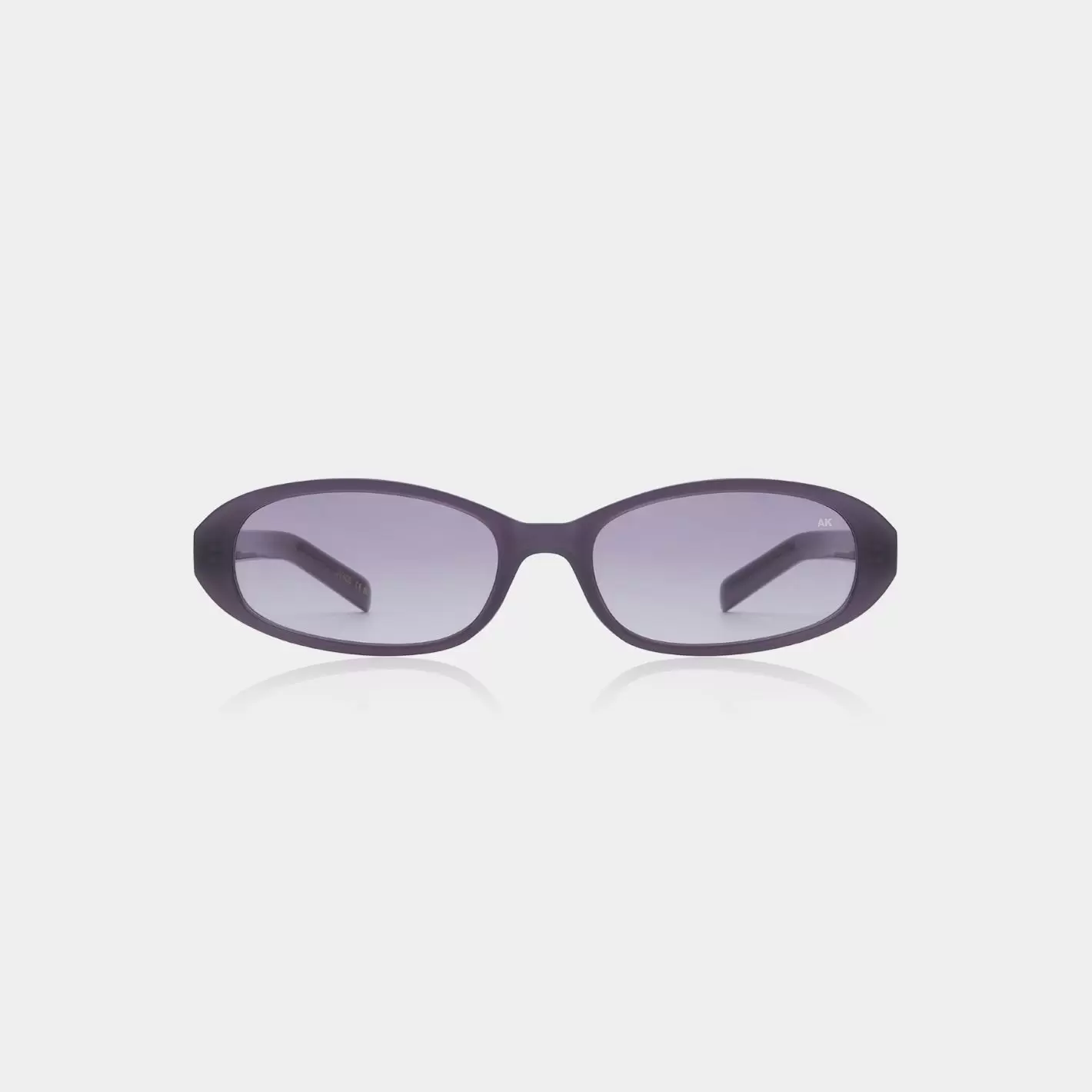 Macy er en ekstra smal unisex solbrille inspireret af 1990'erne, med et let opadgående design i siderne, ovale smalle linser og en blødt afrundet ramme der giver et cool afslappet udtryk.