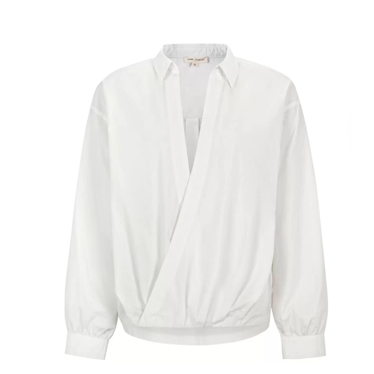 Let og luftig skjortebluse af 100% økologisk bomuld med klassisk skjortekrave, lange ærmer med manchetter og slå-om effekt som danner en dyb V-udskæring.