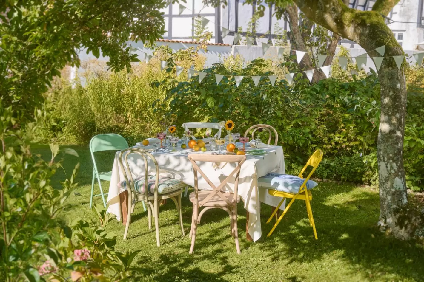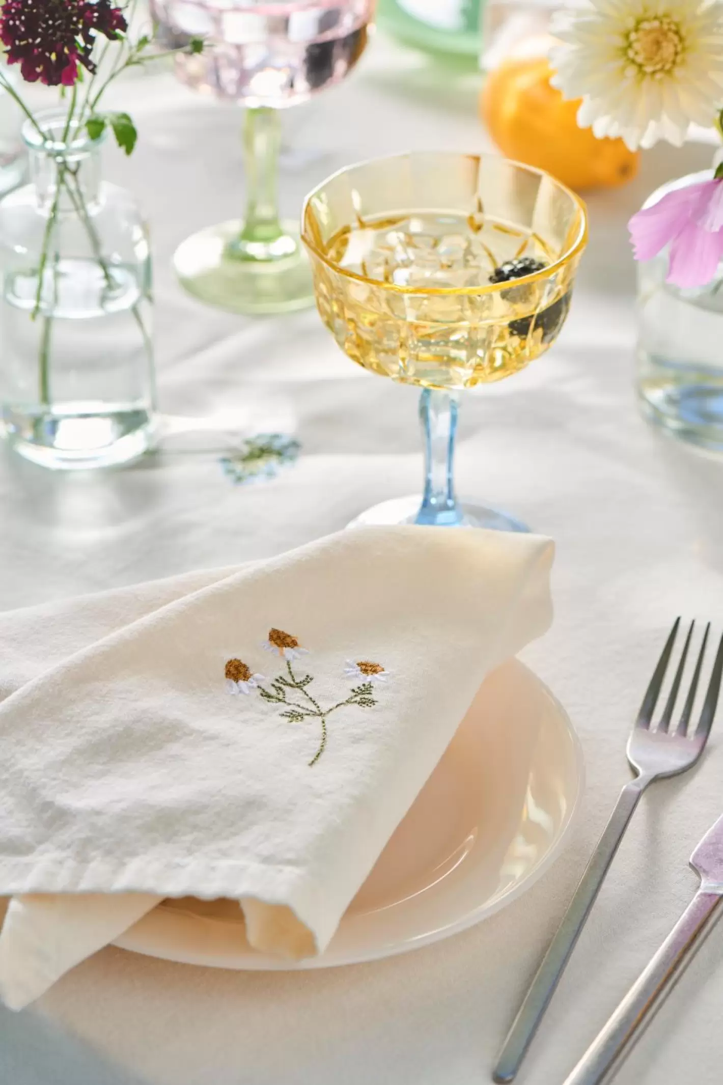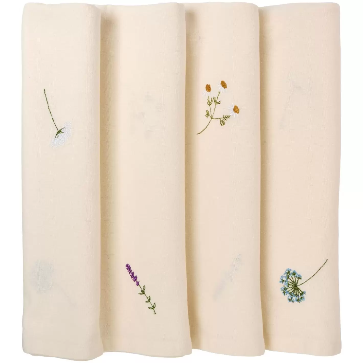 Dugen er perfekt til påskebordet og til alle sommerens fester, med de søde broderede sommerblomster som margueritter, lavendler og smukke skærmblomster der pryder den lyse cremefarvede baggrund.