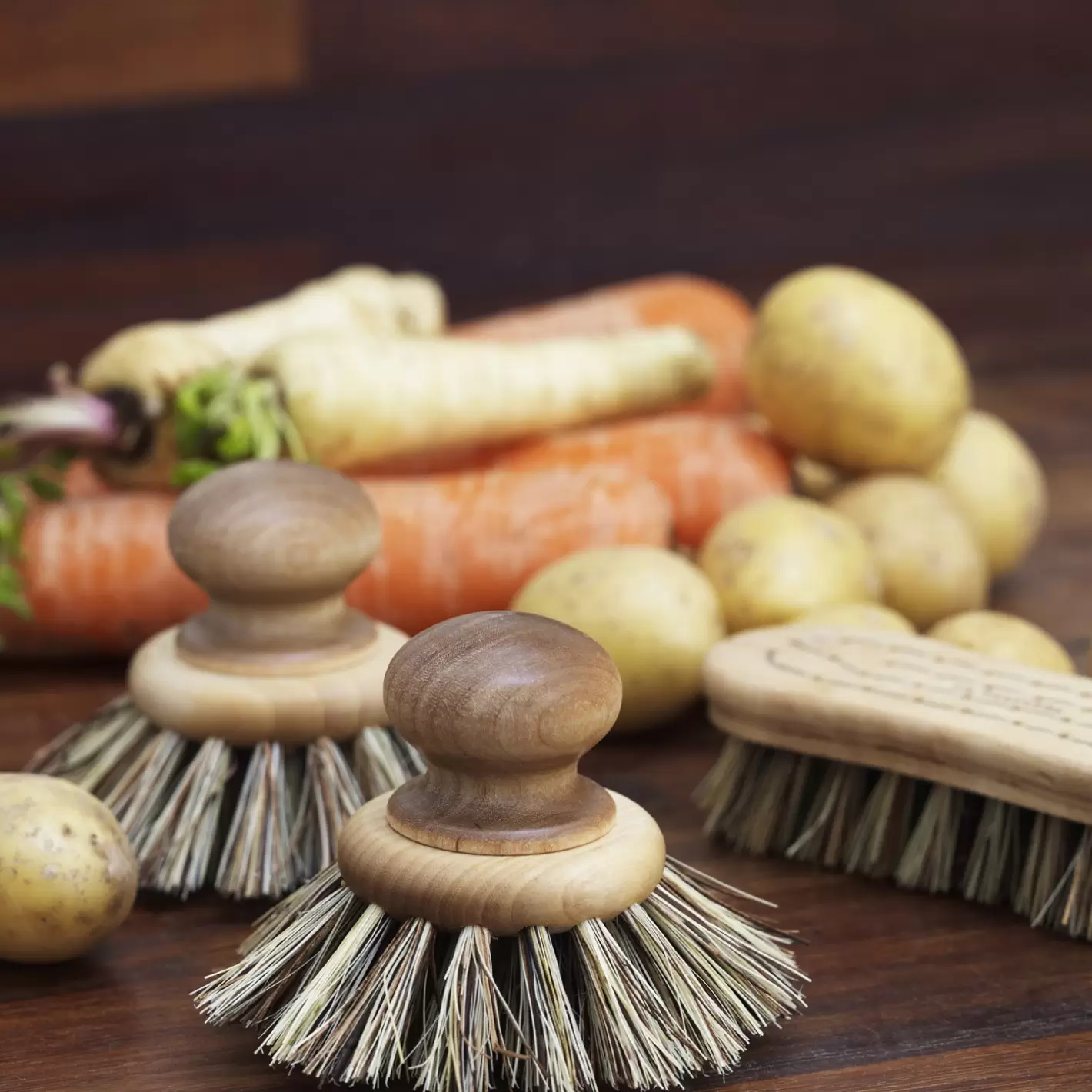 Grøntsagsbørste af birketræ og union mix - en blanding af naturfibre som typisk er en kombination af Palmyra - stive, mørke fibre fra palmeblade og Tampico - blødere, lyse fibre fra agaveplanten. Kombinationen er både stærk og vandafvisende, så her får du en fremragende børste til at skrubbe kartofler og andre rodfrugter.