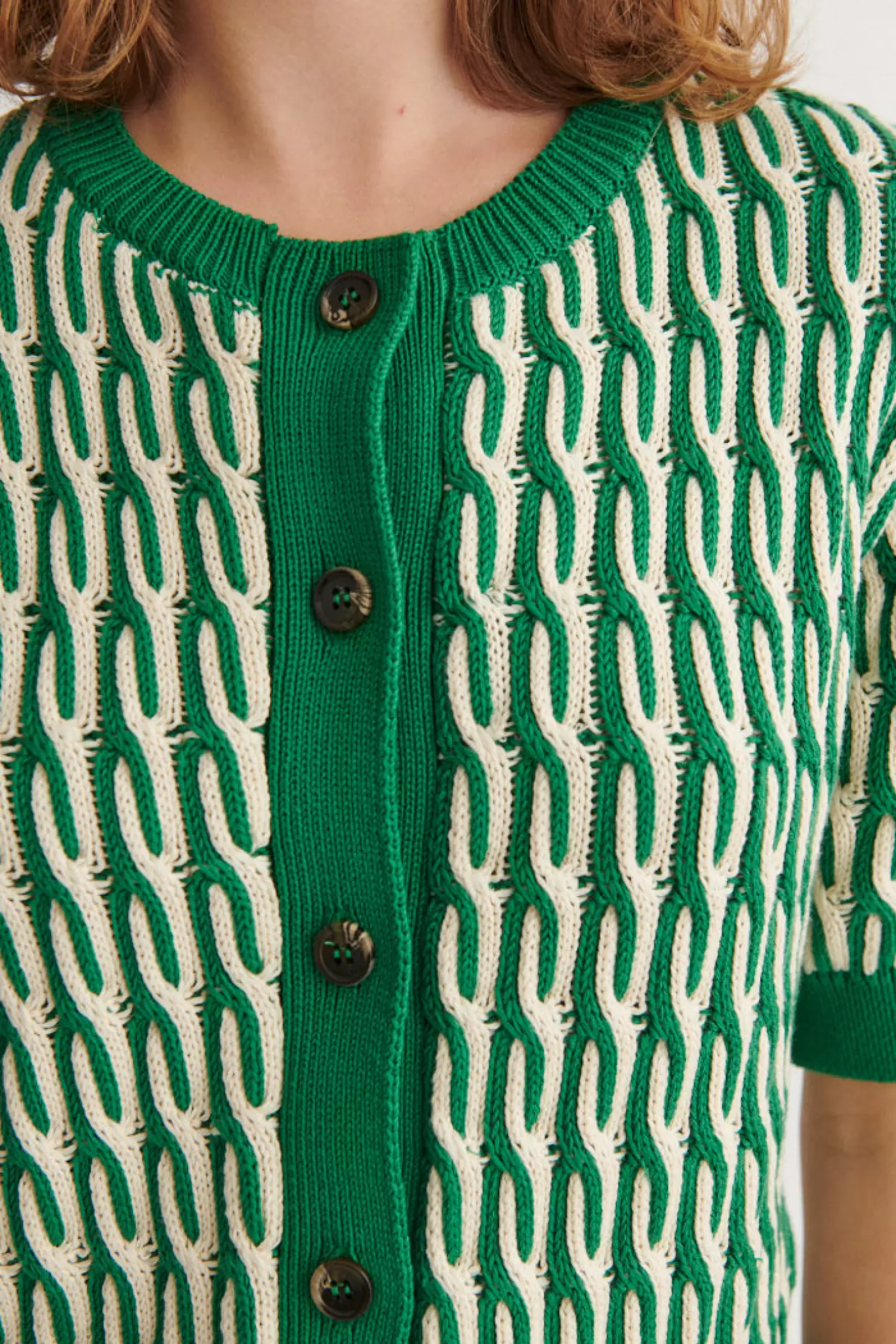 Minie Cardigan, Abundant Green/Whisper White