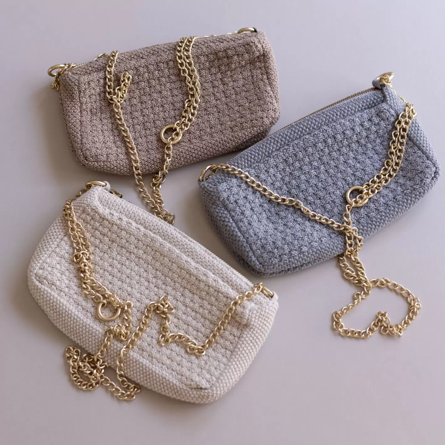 Strikket Clutch Petra, Cross Body Kæde, Beige Melange