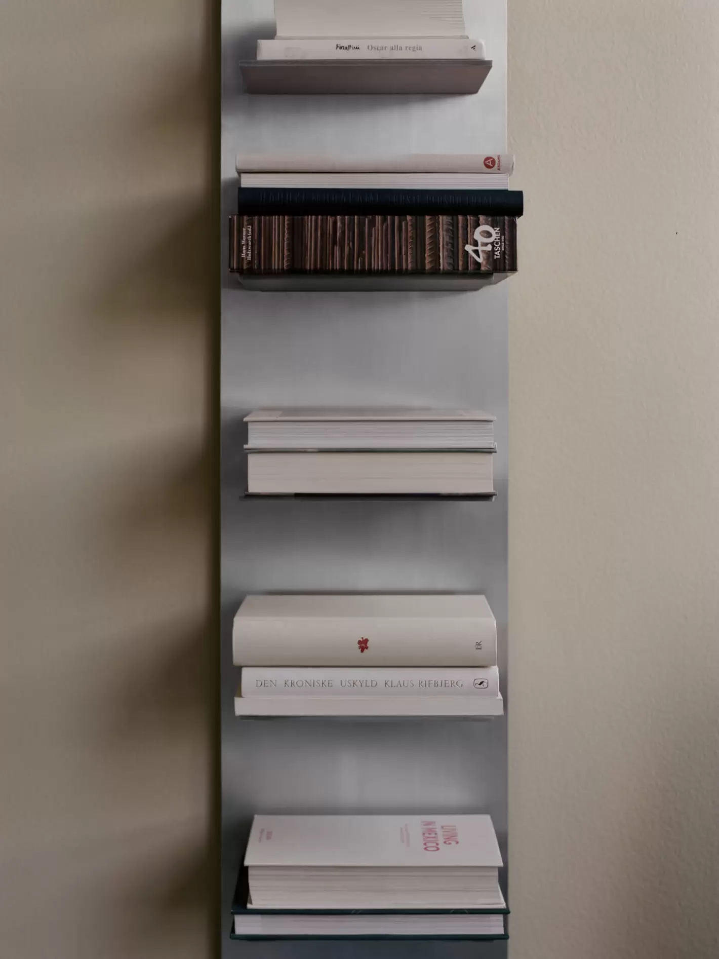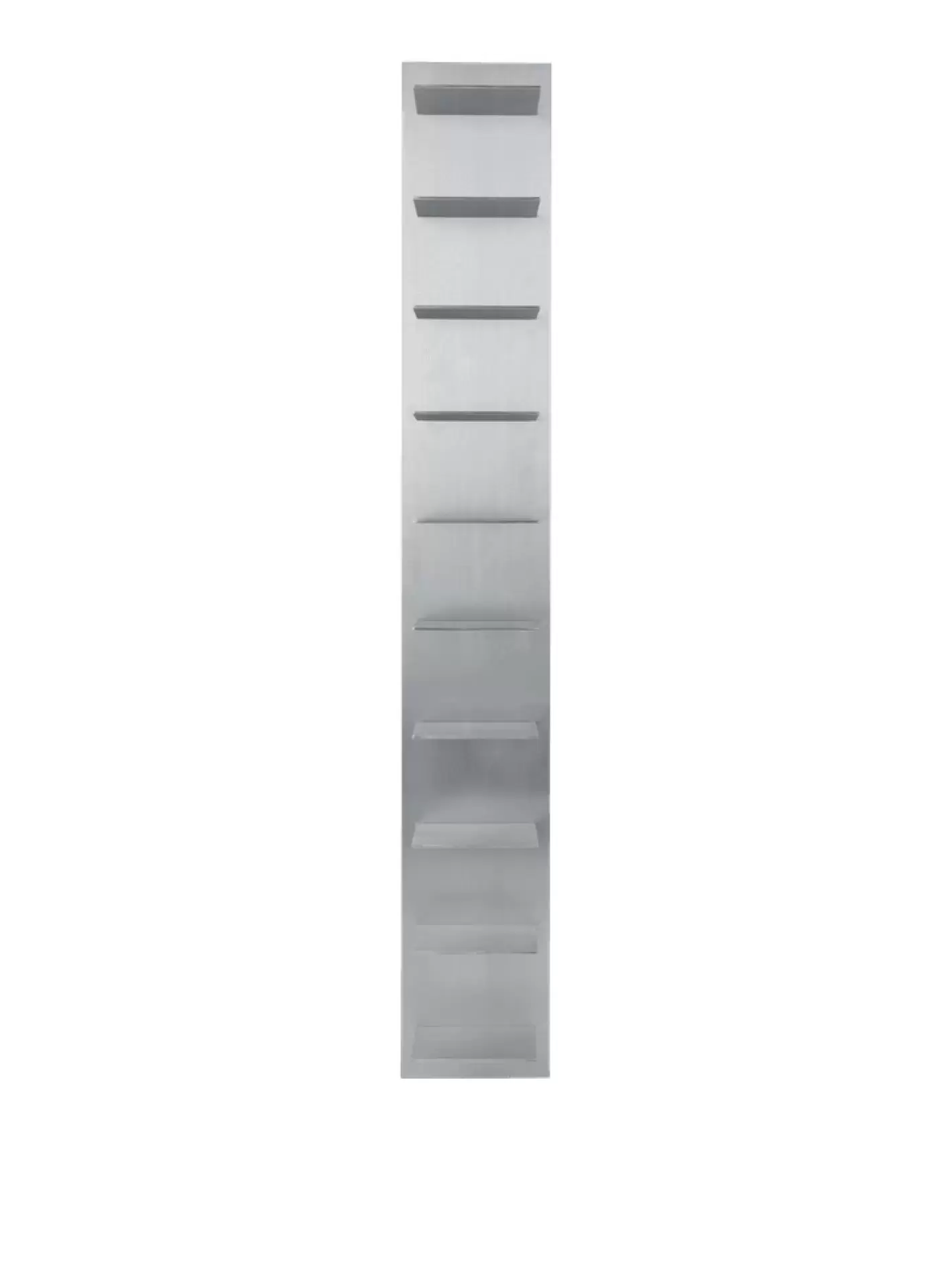 Høj slank reol af aluminium i design som byder på en enkel og stilren tilgang til væghængt opbevaring. Reolen har et lækkert industrielt udtryk, og 10 hylder der giver plads til funktionel opbevaring i alle hjemmets rum.