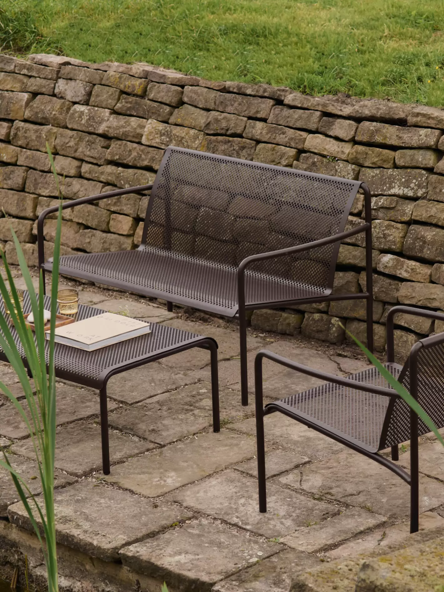 Kollektionen Dapple har perforerede overflader, som er inspireret af de mønstre sollyset tegner, når strålerne filtreres gennem træernes blade. Perforeringerne betyder også, at regnvand ikke samler sig, og danner pytter på dine havemøbler.