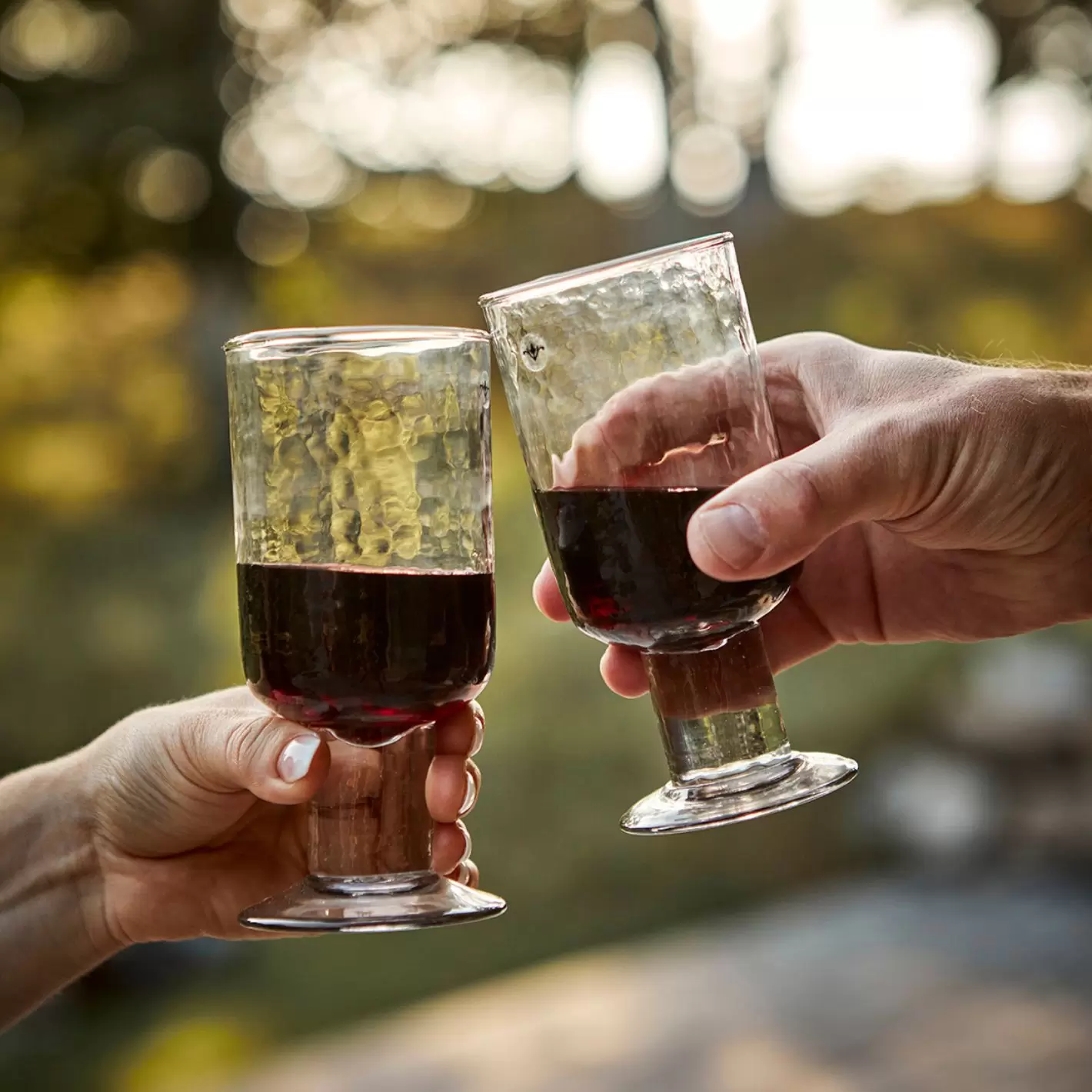 Glasset som er anvendeligt til både vand og vin, har små indkapslede luftbobler i glasset, og en dekorativ let bølget tekstur i overfladen.