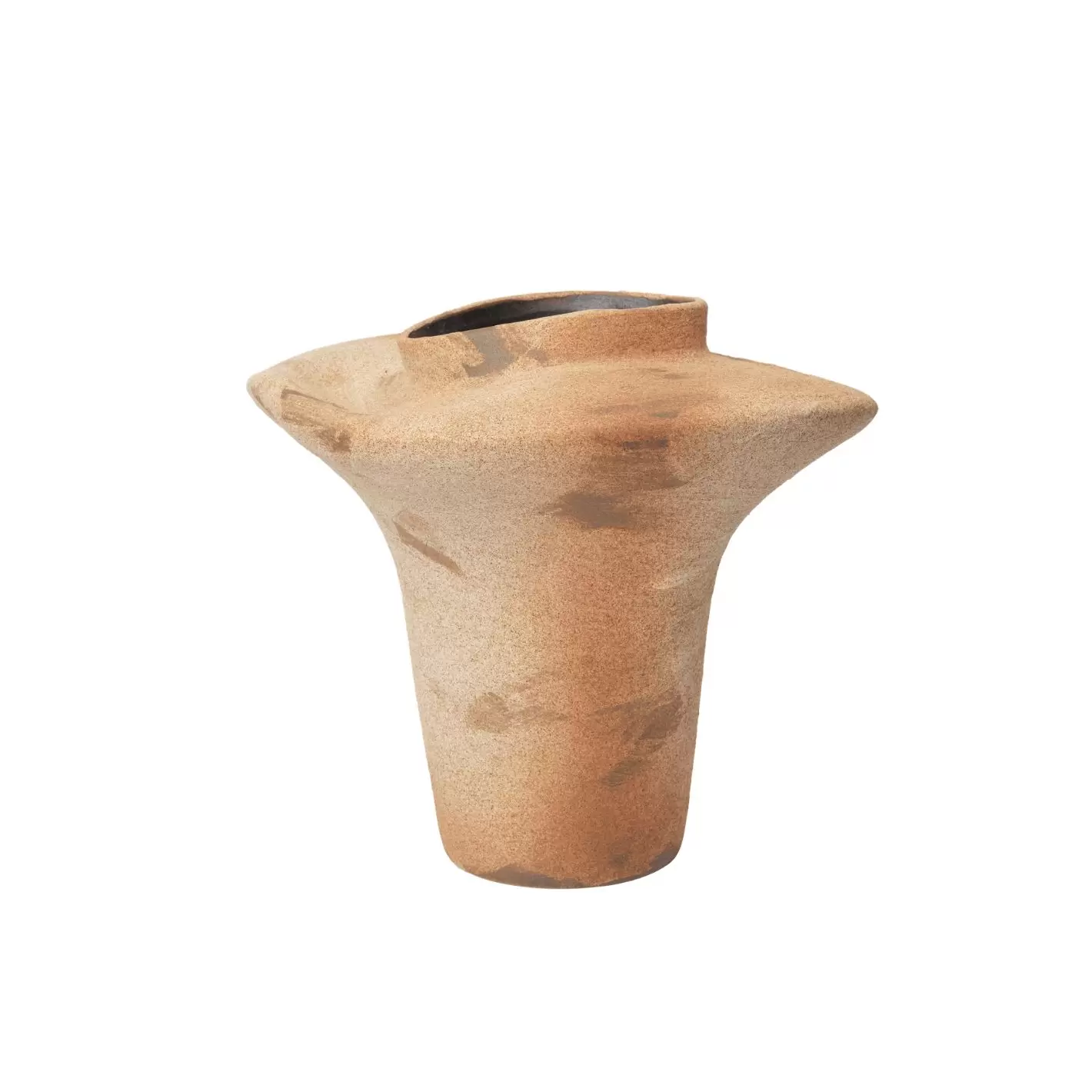 Stor vase med en skulpturel organisk silhuet hvor en bred flydende kant - som er individuelt formet med hænderne - giver subtile variationer i form, tekstur og overfladedetaljer, så ikke to vaser vil fremstå helt ens.