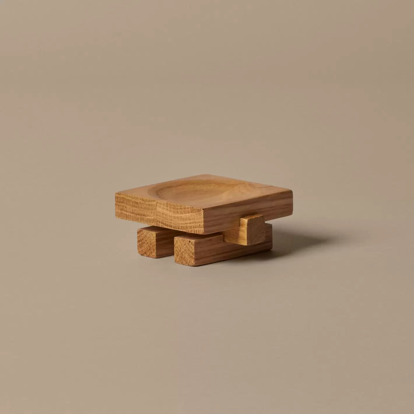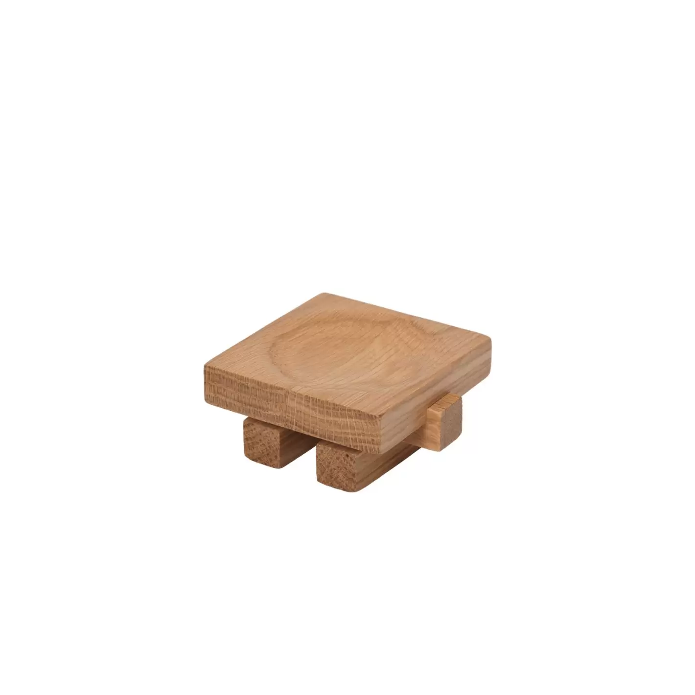 Æsken er fremstillet af lakeret FSC®-certificeret massivt egetræ - en elegant lille bakke som er løftet op på bjælkelignende blokke med raffinerede træsamlinger, der understreger det fine håndværk.