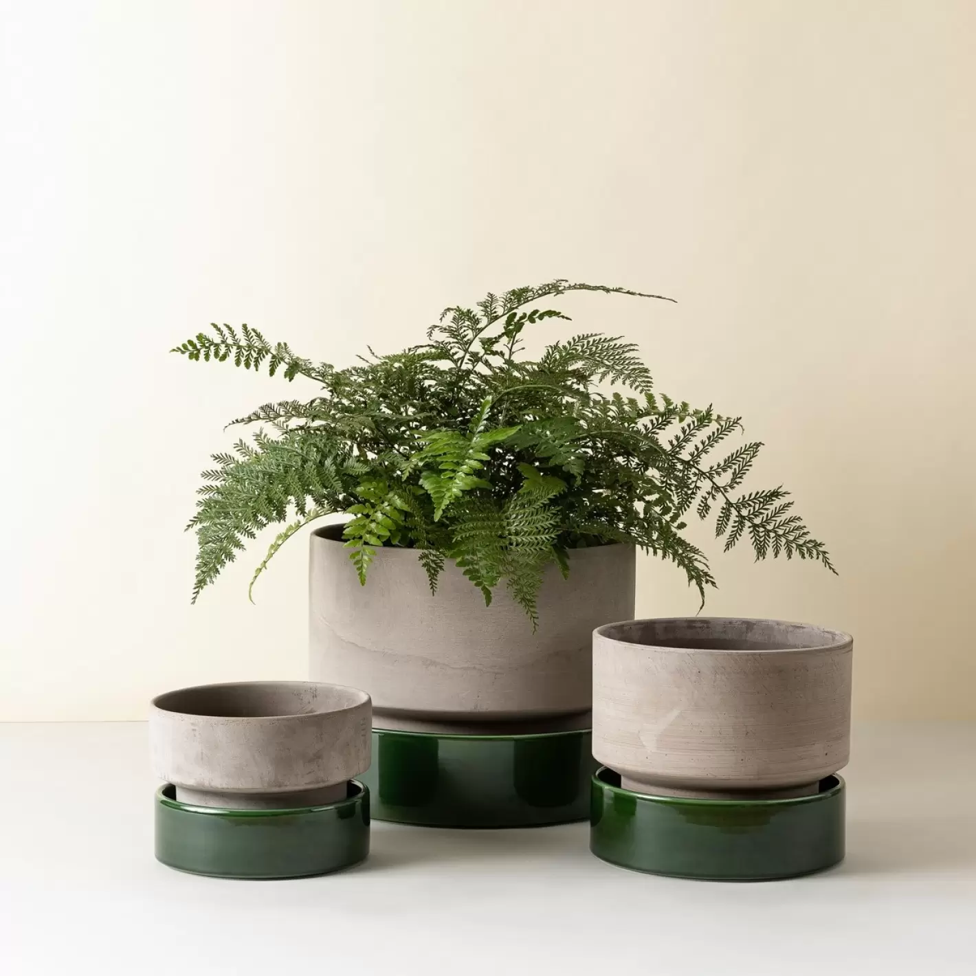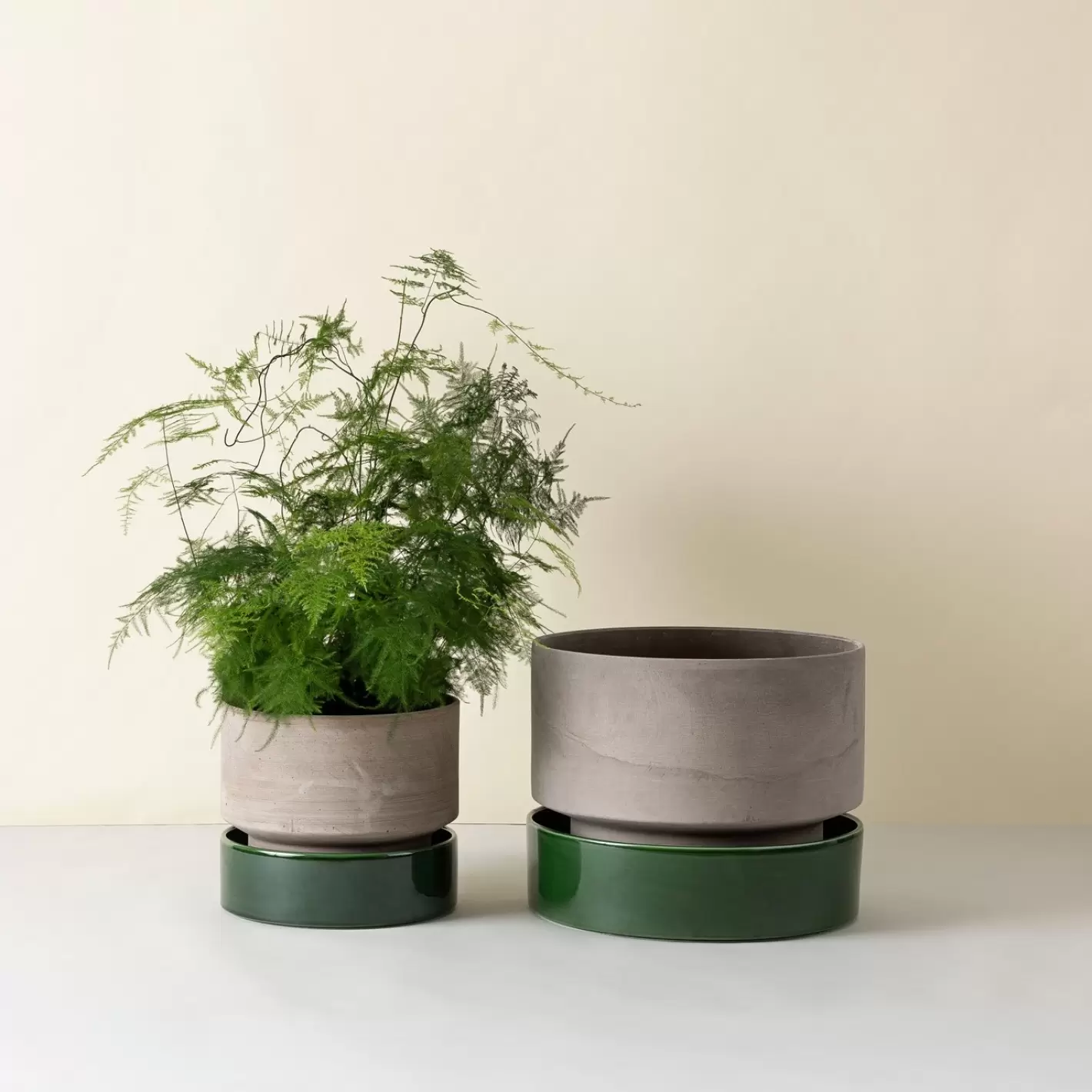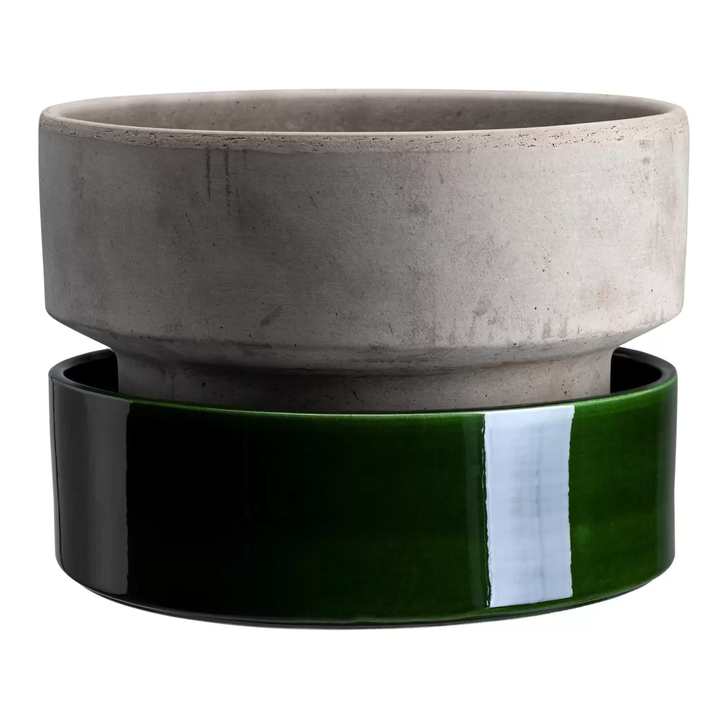 Ø:40 Sæt The Hoff, Uglaseret Grå Krukke + Glaseret Emerald Green Underskål - Hent selv