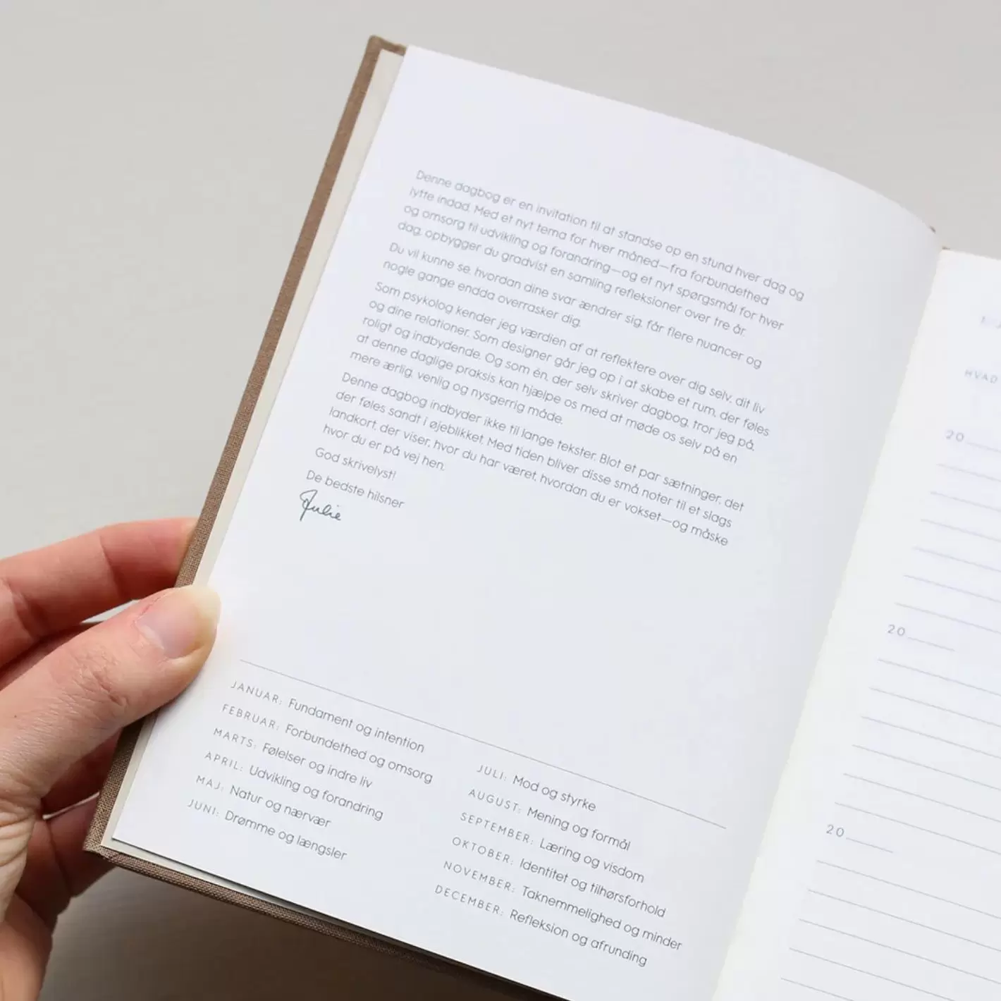 Dagbogen indbyder ikke til lange tekster - blot et par sætninger med det der føles sandt i øjeblikket. Med tiden bliver disse små noter til et slags landkort, der viser, hvor du har været, hvordan du er vokset, og måske hvor du er på vej hen.