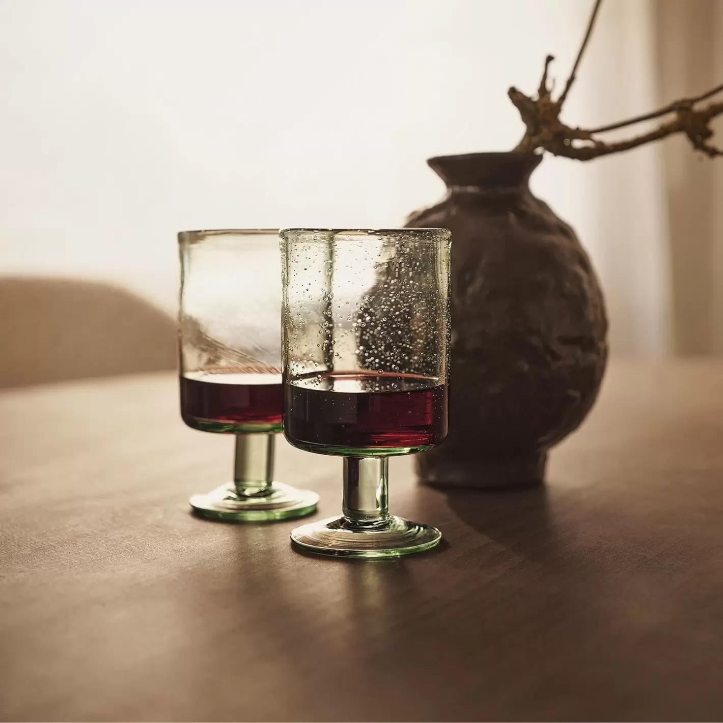Det smukke grønne glas er mundblæst med karakteristiske bittesmå bobler der er inkluderet i glasset, som er med til at få kolde drikke til at fremstå endnu mere forfriskende.